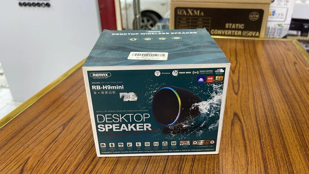 الموديل Remax RB-H9mini (سلسلة Satellite) نوع السماعة سماعة سطح مكتب لاسلكية (Desktop Wireless Speaker) إصدار البلوتوث V5.0 الطاقة المقدرة (Output) 5 واط (W) وحدة التشغيل (Driver) 2.5 ملم (mm) سعة البطارية 1200 مللي أمبير في الساعة (mAh) مدة التشغيل حوالي 6 ساعات مدة الشحن حوالي 2.5 ساعة وضع الاستعداد يصل إلى 1800 ساعة نطاق الإرسال يصل إلى 10 أمتار استجابة التردد 90 هرتز - 18 كيلو هرتز (90\text{Hz}-18\text{kHz}) المقاومة (Impedance) 4 أوم (\Omega) الميزات الإضافية * TWS (إمكانية ربط سماعاتان لتجربة صوت ستيريو). * تحكم باللمس وأزرار للتشغيل. * مضادة للماء/الرذاذ (Waterproof/Splash Proof). * مكالمات HD (عالية الوضوح). المنافذ/الدعم * بطاقة TF/Micro SD (لتشغيل الموسيقى). * منفذ AUX (للتوصيل السلكي). * USB (لتشغيل الموسيقى أو الشحن). * NFC (للاقتران السريع في بعض الإصدارات).