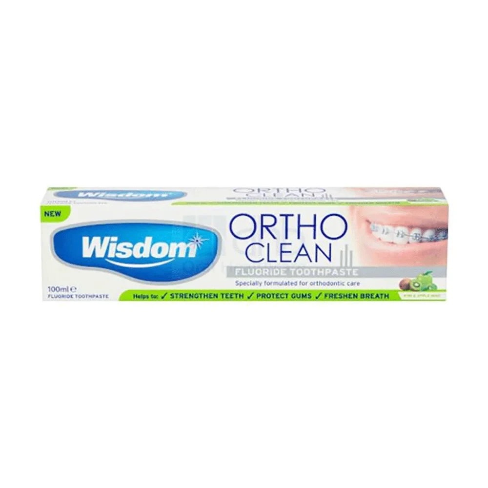 معجون أسنان لطيف للغاية بنكهة التفاح والنعناع مع نسيج شبه سائل لتسهيل الوصول السريع إلى تقويم الأسنان وحولها.