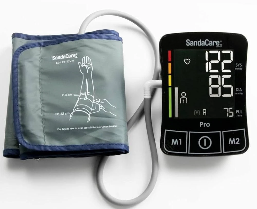 جهاز سانداكير لقياس ضغط الدم هو جهاز رقمي يتميز بالدقة وسهولة الاستخدام، ويناسب الاستخدام المنزلي لمراقبة الضغط الانقباضي والانبساطي ومعدل ضربات القلب. تتوفر منه طرازات مختلفة، بعضها يعمل بالبطاريات والبعض الآخر بمنفذ USB، ويحتوي بعضها على ميزات متقدمة مثل كشف عدم انتظام ضربات القلب وتخزين نتائج قياسات متعددة.  مميزات جهاز سانداكير: دقة عالية: تم التحقق من دقة الجهاز وفقًا لبروتوكولات الجمعية الأوروبية لارتفاع ضغط الدم (ESH).سهولة الاستخدام: يأتي بتصميم عملي وسهل الاستخدام مع شاشة LCD واضحة وأرقام كبيرة.ميزات إضافية: قد تشمل اكتشاف عدم انتظام ضربات القلب، ومؤشر بياني لتقييم النتائج، وذاكرة لتخزين القياسات.مرونة في الطاقة: يعمل ببطاريات AA أو عن طريق منفذ USB.راحة: سوار الذراع واسع النطاق ومريح لجميع أحجام الذراع.مؤشر ارتداء الكفة: يوضح ما إذا كانت الكفة موضوعة بشكل صحيح.