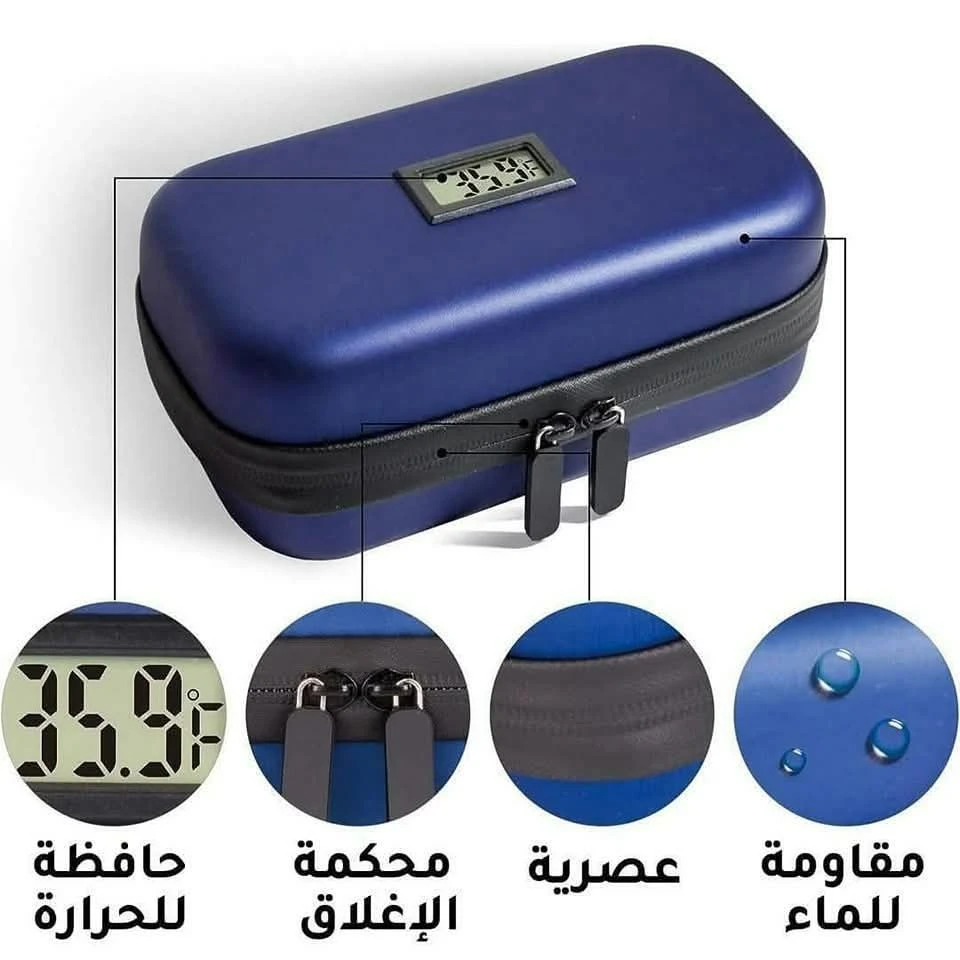 حافظة الأنسولين (Insulin Carrying Case) هي أداة أساسية لمرضى السكري، مصممة للحفاظ على الأنسولين في درجة حرارة مثالية لضمان فعاليته وسلامته أثناء التنقل أو السفر.