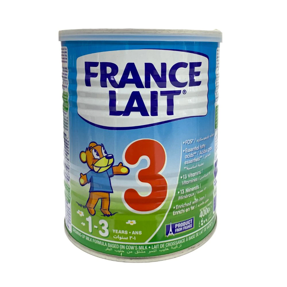 حليب فرانس ليه رقم 3عبوة 400gm وهو مخصص للأطفال في مرحلة النمو من عمر سنة إلى ثلاث