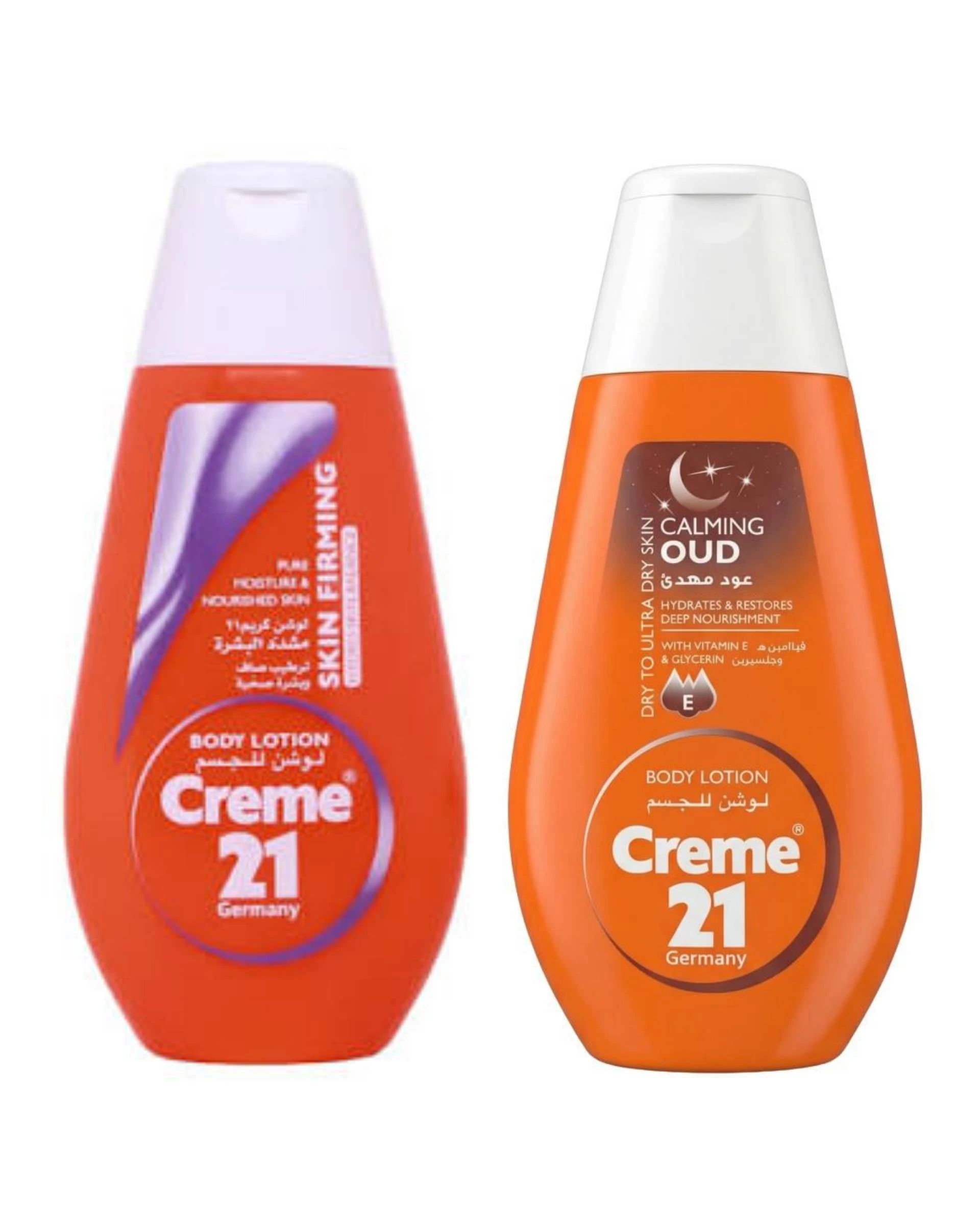 لوشن كريم 21 بالعود المهدئ هو لوشن للجسم يجمع بين ترطيب البشرة بعمق ورائحة العود الفاخرة، يوفر ترطيباً طويل الأمد، يمتص بسرعة دون ترك ملمس دهني، ويحتوي على فيتامين E ومكونات مغذية تجعل البشرة ناعمة، مرنة، ومتجانسة اللون، وهو متاح في عبوات مختلفة كـ 250 مل ويناسب جميع أنواع البشرة، ويوفر شعوراً بالراحة والهدوء.