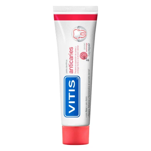 معجون أسنان Vitis Anticaries هو أول معجون أسنان يحمي ويصلح المينا بفضل عمل جزيئات الهيدروكسيباتيت النانوية، وهو عنصر طبيعي للأسنان، والذي يجمع بين مينا الأسنان ويلتصق بها.