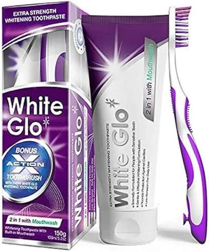 معجون أسنان مبيض 2 في 1 من وايت جلو: معجون تبييض الأسنان الفريد ذو القوة المزدوجة مع قاعدة غسول الفم من وايت جلو.يصل غسول الى المناطق التي يصعب الوصول إليها للمساعدة في محاربة البكتيريا التي تسبب رائحة الفم الكريهة.يبيض مينا الأسنان ويزيل الاصفرار ويوفر أقصى قدر من نظافة الفم. الملحقات: 1× فرشاة أسنان. استمتع بأسنان نظيفة وصحية وناصعة البياض