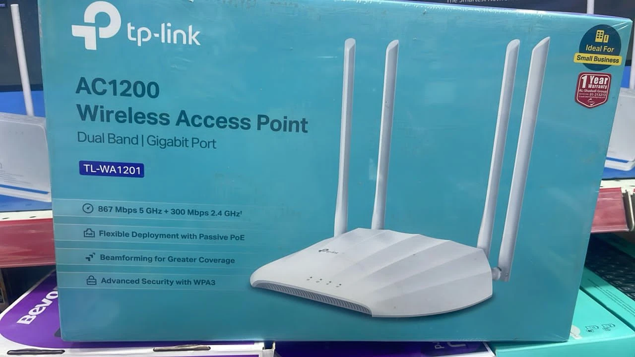 ​النوع: نقطة وصول لاسلكية (Wireless Access Point). ​النطاق: ثنائي النطاق (Dual Band). ​المنفذ: منفذ جيجابت (Gigabit Port). ​سرعة الاتصال: ​867 ميجابت في الثانية على نطاق 5 جيجاهرتز. ​300 ميجابت في الثانية على نطاق 2.4 جيجاهرتز. ​إجمالي سرعة AC1200 (مجموع السرعتين).