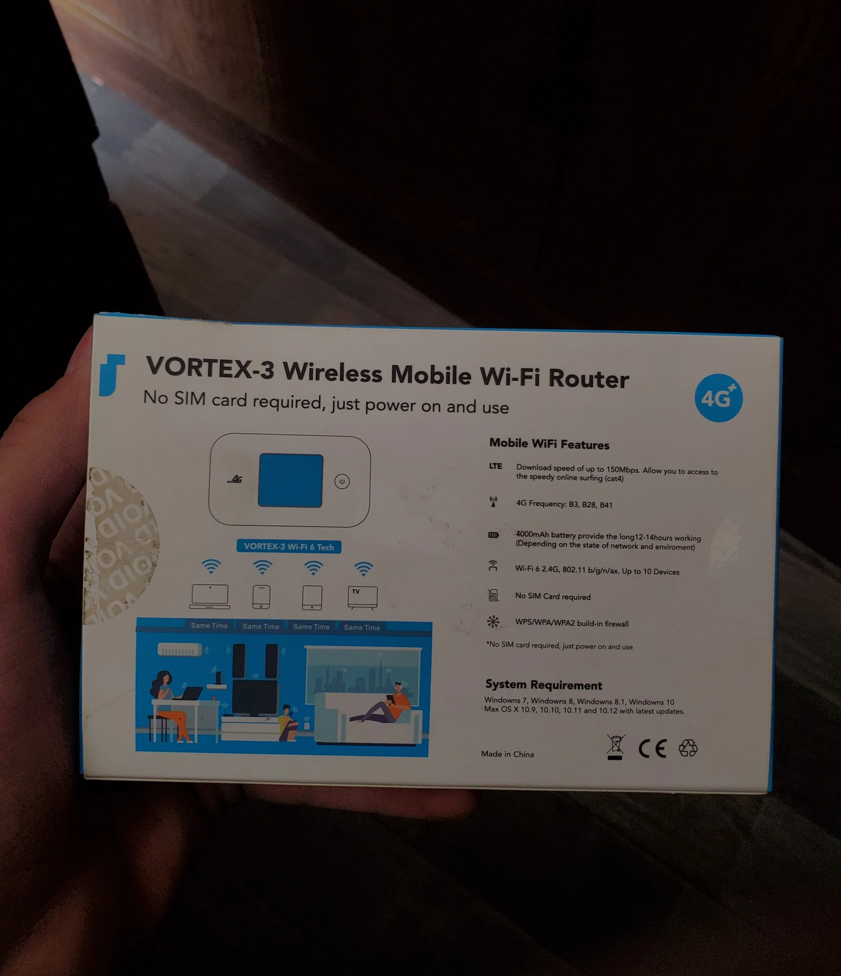 يدعم تقنية Wi-Fi 6 لأداء أقوى وتغطية أوسع. يدعم اتصال ما يصل إلى 12 مستخدمًا في نفس الوقت. مزود بتسع هوائيات لبث فائق السرعة. البطارية والشحن: بطارية بسعة 4000mAh تدوم حتى 24 ساعة. يدعم الشحن السريع. يتضمن وضع توفير الطاقة الذكي. الشاشة والميزات: شاشة ملونة لعرض تفاصيل الاستخدام وحالة الاتصال. إمكانية تحديد السرعة لكل مستخدم. تحديد الباندات (يدويًا أو تلقائيًا). تقييد عدد المستخدمين. مشاركة الواي فاي بسهولة عبر WPS. إخفاء الشبكة، وفلترة متقدمة (MAC/IP/URL/Port)، وحماية إضافية عبر DNS. تحديثات تلقائية. أمان وحماية: جدار حماية WPA3-SAE متقدم ضد هجمات Brute Force.
