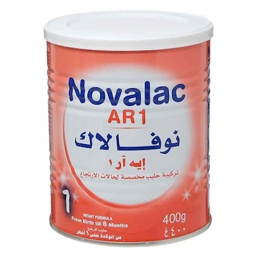 نوفالاك AR 1 هو حليب مخصص للأطفال الرضع من الولادة وحتى عمر 6 أشهر، مصمم خصيصًا لمعالجة مشكلات الارتجاع والقيء. يحتوي على نشا الذرة الذي يكثف الحليب داخل معدة الطفل ليقلل من ارتجاعه. يُعد حليبًا كامل التغذية وغنيًا بالفيتامينات والمعادن الأساسية لدعم النمو الصحي.
