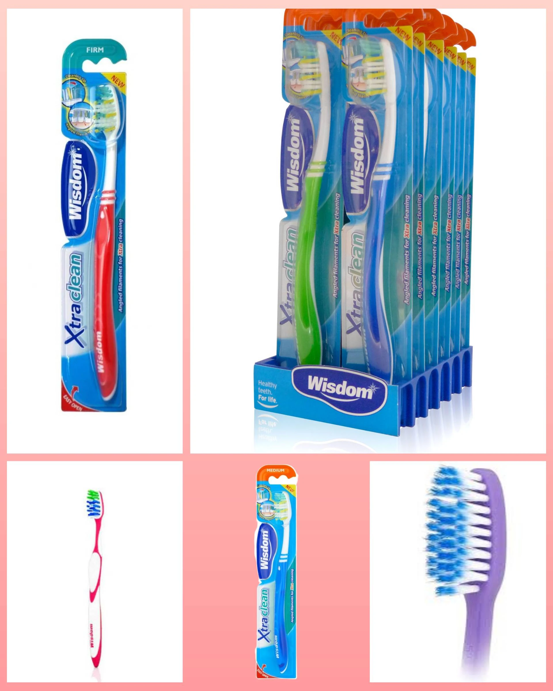 وزدم فرشاة اسنان اكسترا كلين تم تصميمه بخيوط بزاوية ومقبض طويل المدى لضمان التنظيف الفعال للمناطق التي يصعب الوصول إليها.  استخدمه مع معجون Wisdom Xtra Clean للحصول على تنظيف شامل رائع. المميزات الرئيسية: خيوط بزاوية للوصول إلى المزيد من الأسنان وتنظيفها للحصول على أسنان ولثة صحية. طرف تنظيف بزاوية للمساعدة في الوصول إلى الأسنان الخلفية. تصميم مقبض مريح لتحقيق أقصى قدر من الراحة والتحكم. الفوائد: يساعد في الحفاظ على صحة اللثة. ينظف بين الأسنان إزالة اللويحة.