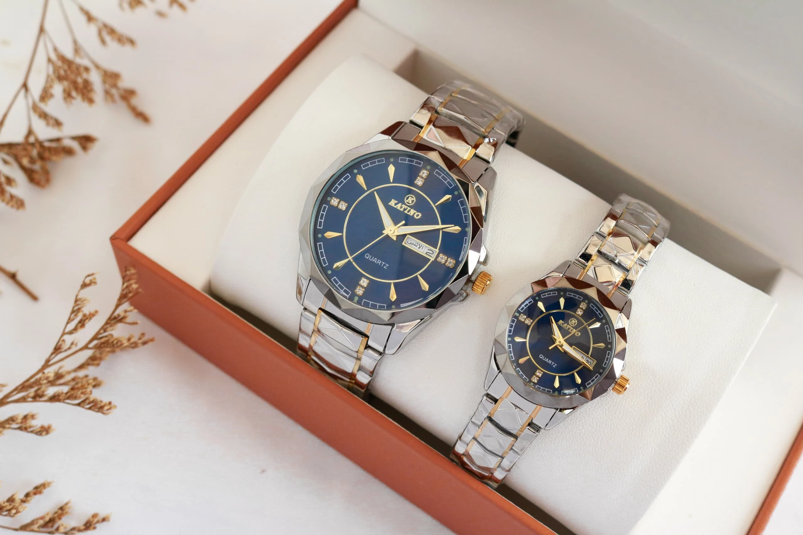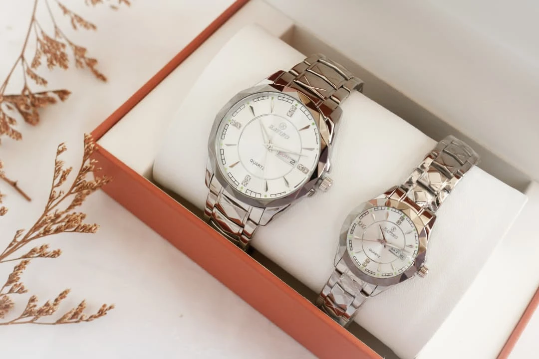 طقوم ساعات رجالي ونسائي قمة في الروعة ضد الماء مع ضمانة 100% لمدة عام