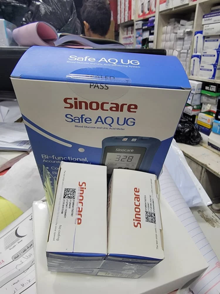 شرائط سينوكير لقياس نسبة الجلوكوز وحمض اليوريك هي شرائط اختبار تُستخدم مع جهاز قياس من نوع "Safe AQ UG" أو ما شابه، حيث تتطلب كل شرائط الاختبار أن تُوضع في فتحة الجهاز قبل أخذ عينة دم. طريقة الاستخدام تتضمن تحضير يدك بشكل نظيف، إدخال الشريط في الجهاز (بحيث يكون طرفه التلامس هو الأول)، وخز الإصبع للحصول على قطرة دم، ووضعها على الشريط ليعرض الجهاز النتيجة.