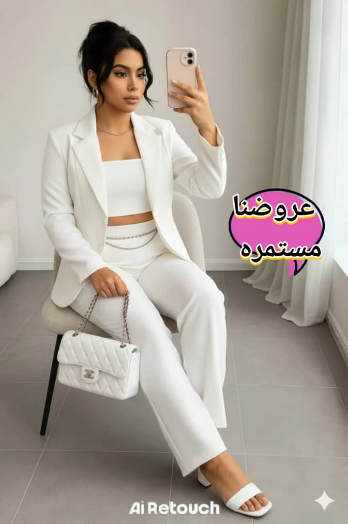 طقم نسائي 3قطع بنطلون مع الصدريه مع الجاكيت كوري فخم كلاسيكي قماش كتان لكرا راقي الأصلي والممتاز المقاسات يلبس من وزن 40الى الى 70