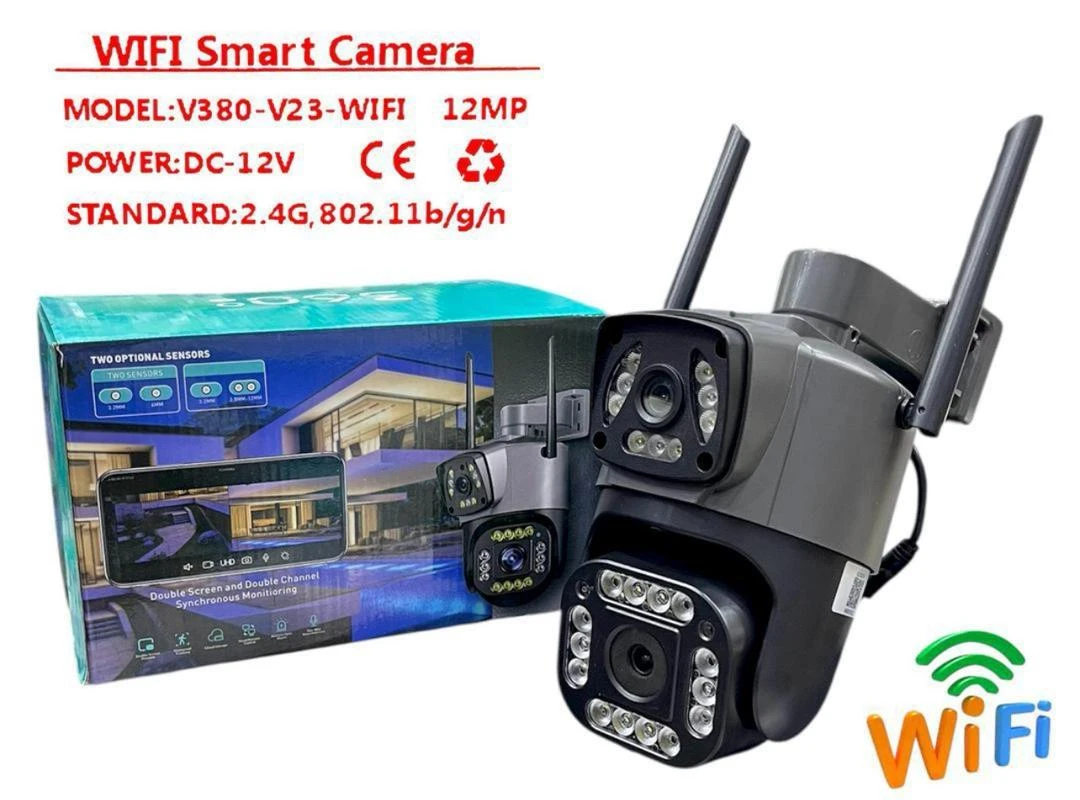 الطراز (الموديل) V380-V23-WIFI الدقة (MP) 12\text{MP} (ميغابكسل) مصدر الطاقة (Power) DC-12\text{V} (تيار مستمر 12 فولت) معيار الواي فاي (Standard) 2.4