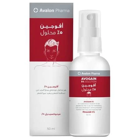 أفوجين 5% هو محلول موضعي يُستخدم لعلاج تساقط الشعر الوراثي (الصلع الوراثي) لدى الرجال الذين تتراوح أعمارهم بين 18 و65 عامًا. يحتوي على مادة فعالة اسمها المينوكسيديل، تعمل عن طريق زيادة تدفق الدم إلى بصيلات الشعر لتحفيز نموه ومنع المزيد من التساقط. تظهر النتائج عادةً بعد عدة أشهر من الاستخدام المنتظم مرتين يوميًا.