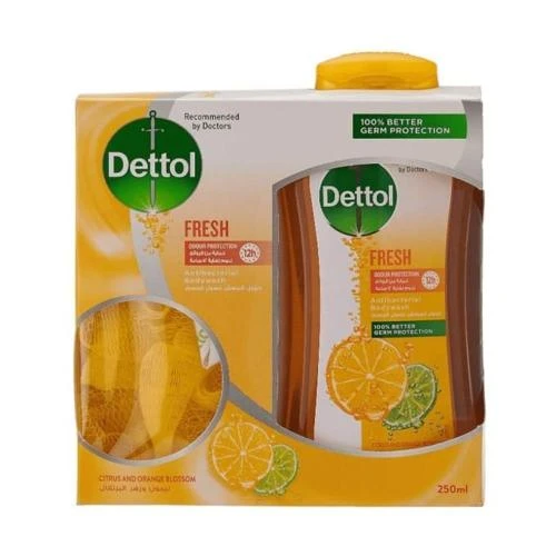 ديتول غسول جسم فريش بالليمون وزهر البرتقال - 250 مل + ليفة
