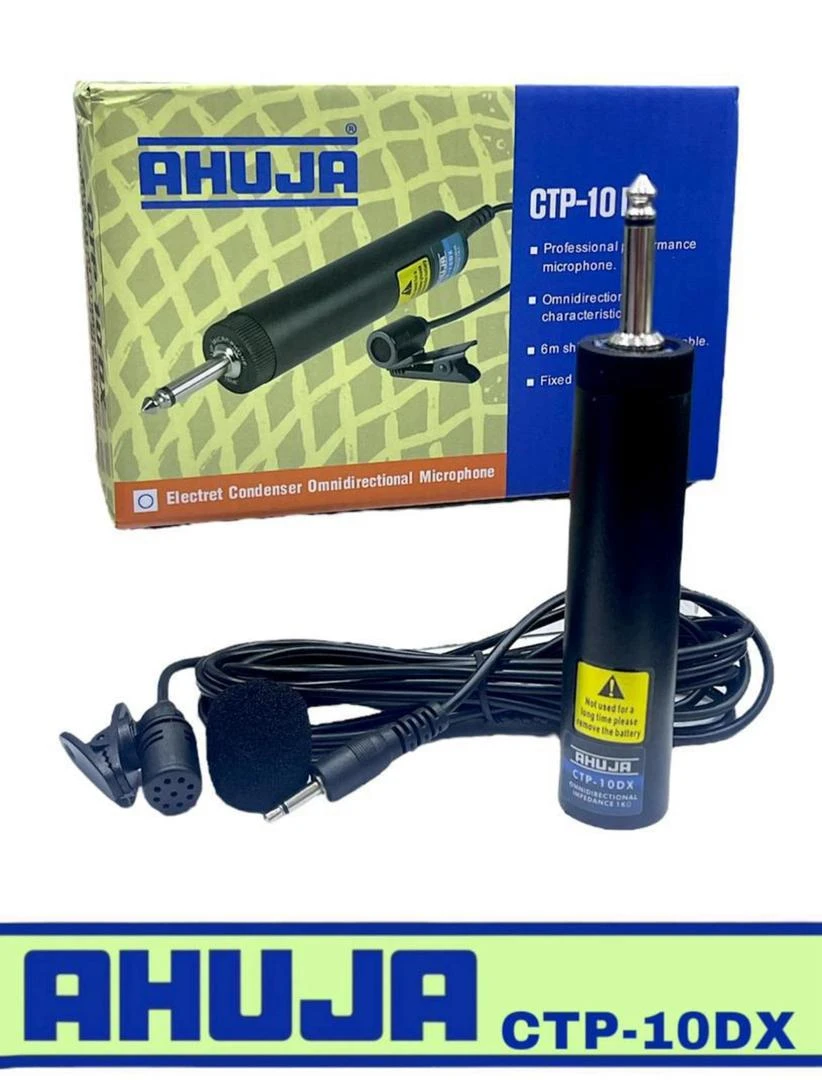 اسم الموديل CTP-10DX النوع ميكروفون مكثف إلكتريت (Electret Condenser) خاصية التوجيه (النمط القطبي) متعدد الاتجاهات (Omnidirectional Characteristic) الاستخدام ميكروفون احترافي (Professional microphone) طول الكابل 6 أمتار (6m shielded cable) تقريبًا الميكروفون الإضافي يأتي مع ميكروفون تثبيت بالملابس/طية الصدر (Lavalier/Lapel) منفصل صغير مصدر الطاقة يعمل