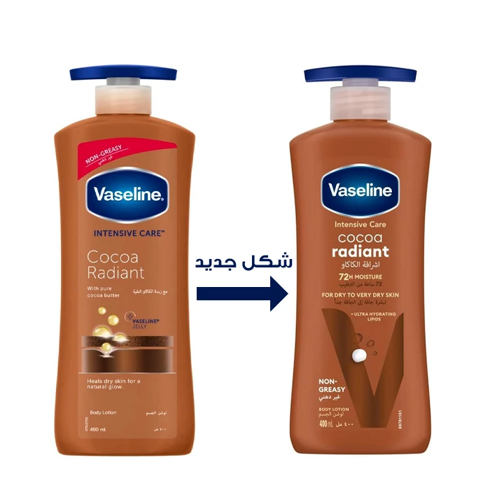 لوشن لليدين والجسم بخلاصة زبدة الكاكاو النقية من فازلين الذي يوفر عناية فائقة ويعمل على ترطيب بشرة الجسم واليدين الجافة. • لوشن رادينت لليدين والجسم بالكاكاو من فازلين مصنوع من الكاكاو وزبدة الشيا الخام بنسبة 100% نظراً إلى قدرتهما على إبراز إشراقة البشرة الطبيعية. • منتج يعالج البشرة الجافة والأيدي الجافة للحصول على إشراقة لامعة وترطيب غني وغير دهني.
