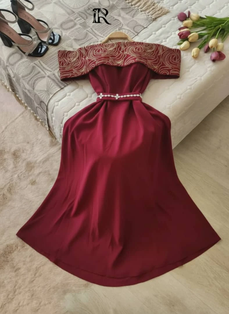 الان وفرنا لكي فستان نسائي جميل تتميز ب: لونين. دم الغزل🔴. واسود. ⚫ 🌼قماش ليكرا كريب 🌼 قلبه تطريز 🌼محلي متقن 🌼مقاس فري سايز
