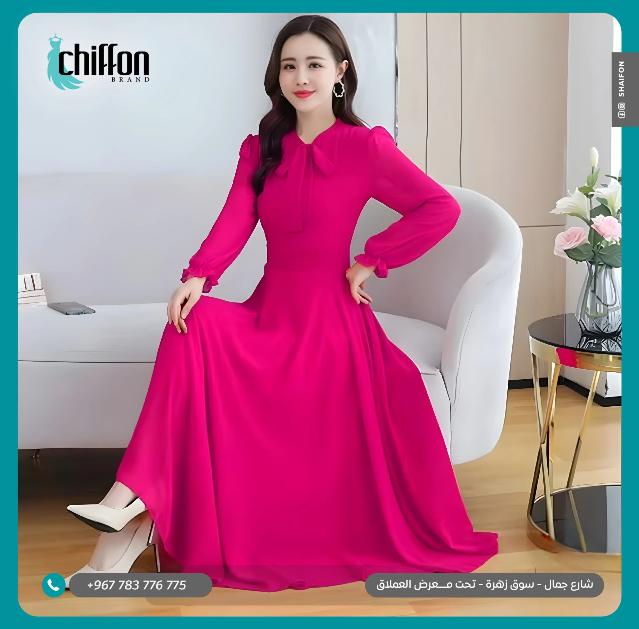 فستان نسائي شيفون طويل. الوانه كما موضح بالصوره بالإضافة إلى اللون السماوي متوفر جميع المقاسات