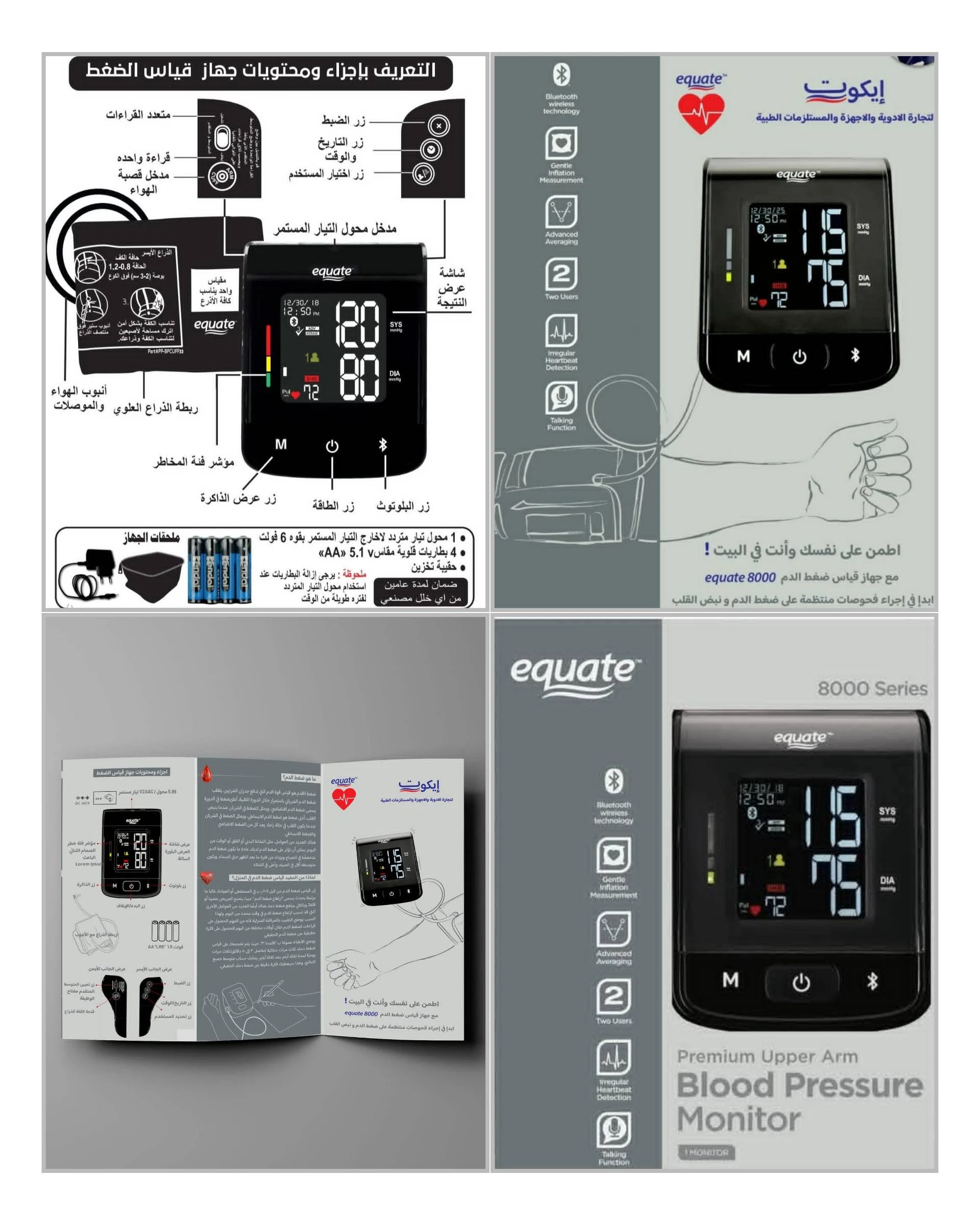 1.جودة وتكنولوجيا عالمية عالية 2.مؤشر لتحديد مرحلة ارتفاع ضغط الدم 3.كشف اضطراب نبضات القلب و أيضاً قياس معدل نبضات القلب 4.وجود مستشعر للحركة ومؤشر لصحة وضعية الـكف أثناء القياس لضمان أفضل وضعية للذراع و الوصول لدقة قراءة فائقة 6.شاشة LCD كبيرة لرؤية واضحة 7.ضمان لمده سنتين 8.تقنية Bluetooth للمزامنة مع تطبيق Equate Heart Health App 9. عملية سهلة بلمسة واحدة 10.وظيفة التحدث التعليماتية والمعلوماتية 11.مجهزة بتقنية البلوتوث 12.يأخذ ومتوسط 3 قراءات متتالية 13.يخزن القراءة حتى 120 قراءة 14. تيار مستمر عبر الكهرباء او عبر البطاريات 15. التبديل بين 2 مستخدمين