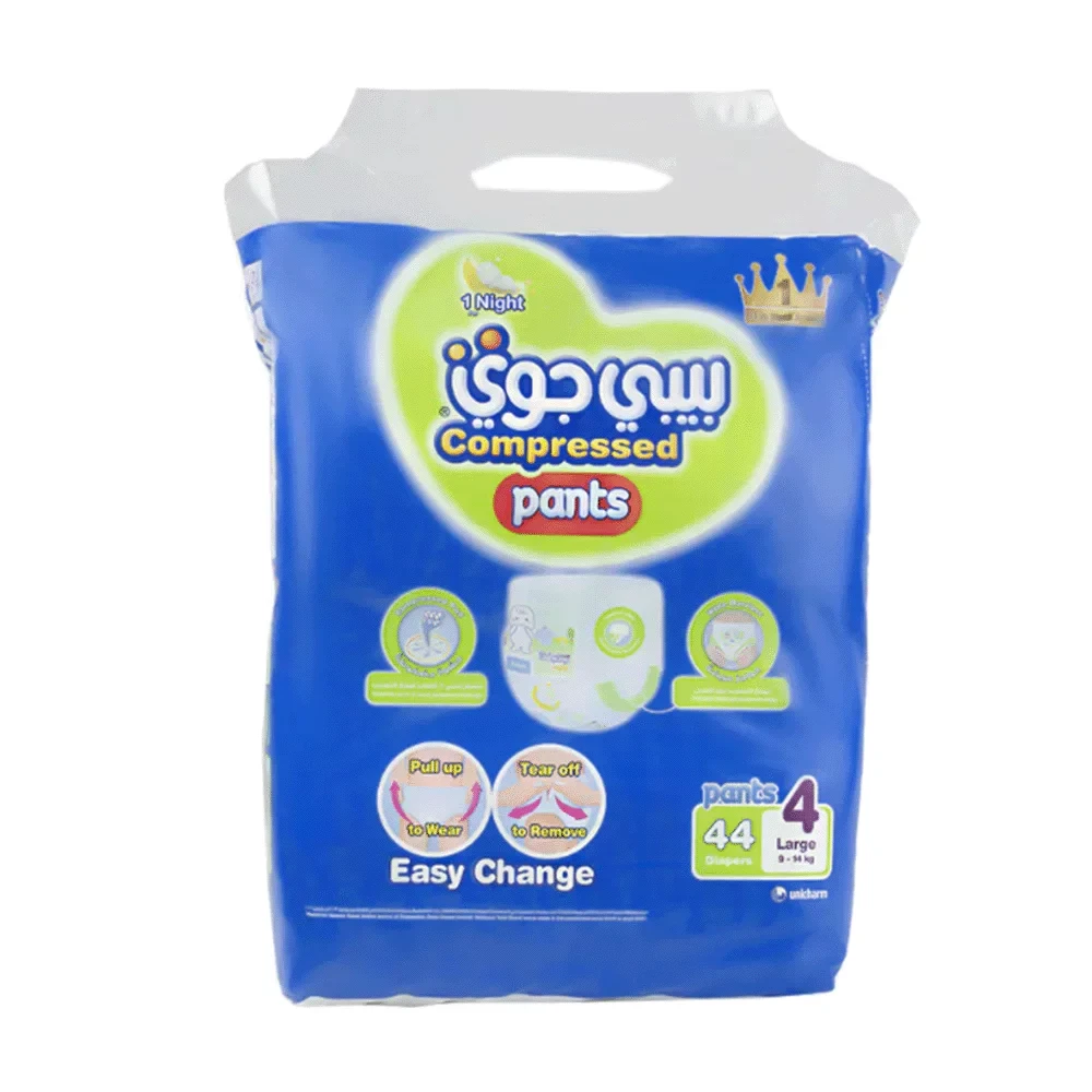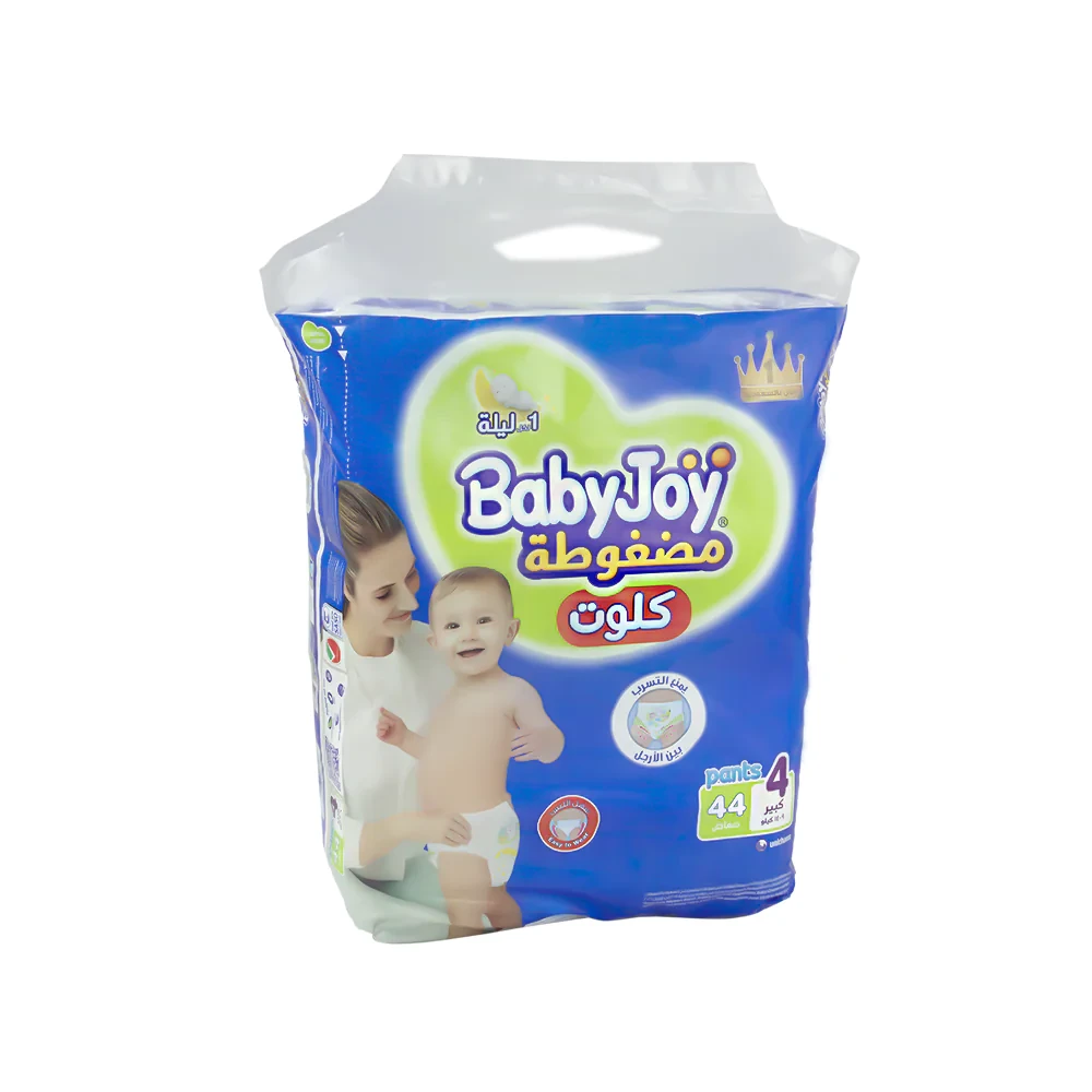 بيبي جوي كلوت سهل اللبس مثل الكلوت العادي ومناسب للإستخدام عندما يبدا الطفل بالحبو وتزداد حركته ويصبح تغيير الحفاض صعباً. لا يتكتل حتى بعد امتصاص كمية كبيرة من البلل. قنوات لتوزيع البلل على كامل الحفاض. مطاط عريض حول الأرجل ليمنع التسرب بين الأرجل. خاصية التنفس الفريدة لتهوية بشرة الطفل لتبقى صحية. ملمس قطني ناعم يلائم بشرة الأطفال الناعمة والحساسة.خصر مطاطي سترتش: بيبي جوي كلوت مريح ويلائم جسم الطفل تماما ولا يترك آثاراً على البشرة. ملمس قطني: يتميز بمواد أكثر نعومة جديدة لطيفة على بشرة الطفل وهي ذات ملمس قطني للحفاظ على راحة طفلك في جميع الأوقات. حفاض سهل التغيير: بيبي جوي كلوت بخصر مطاطي ناعم ومريح وقابل للتمدد يجعل عملية تغيير الحفاض سهلة كتغيير الملابس الداخلية. فائق الامتصاص: بيبي جوي كلوت يتمتع بقدرة امتصاص فائقة تعادل 6 اكواب من السائل لحماية من التسرب لمدة اطول.إرشادات الاستخدام : اضبطي اللسان المطاطي بحيث لا يكون ضيقًا جدًا أو فضفاضًا جدًا ، يجب أن تكوني قادرة على وضع إصبعين بإحكام بين الحفاض والبطن