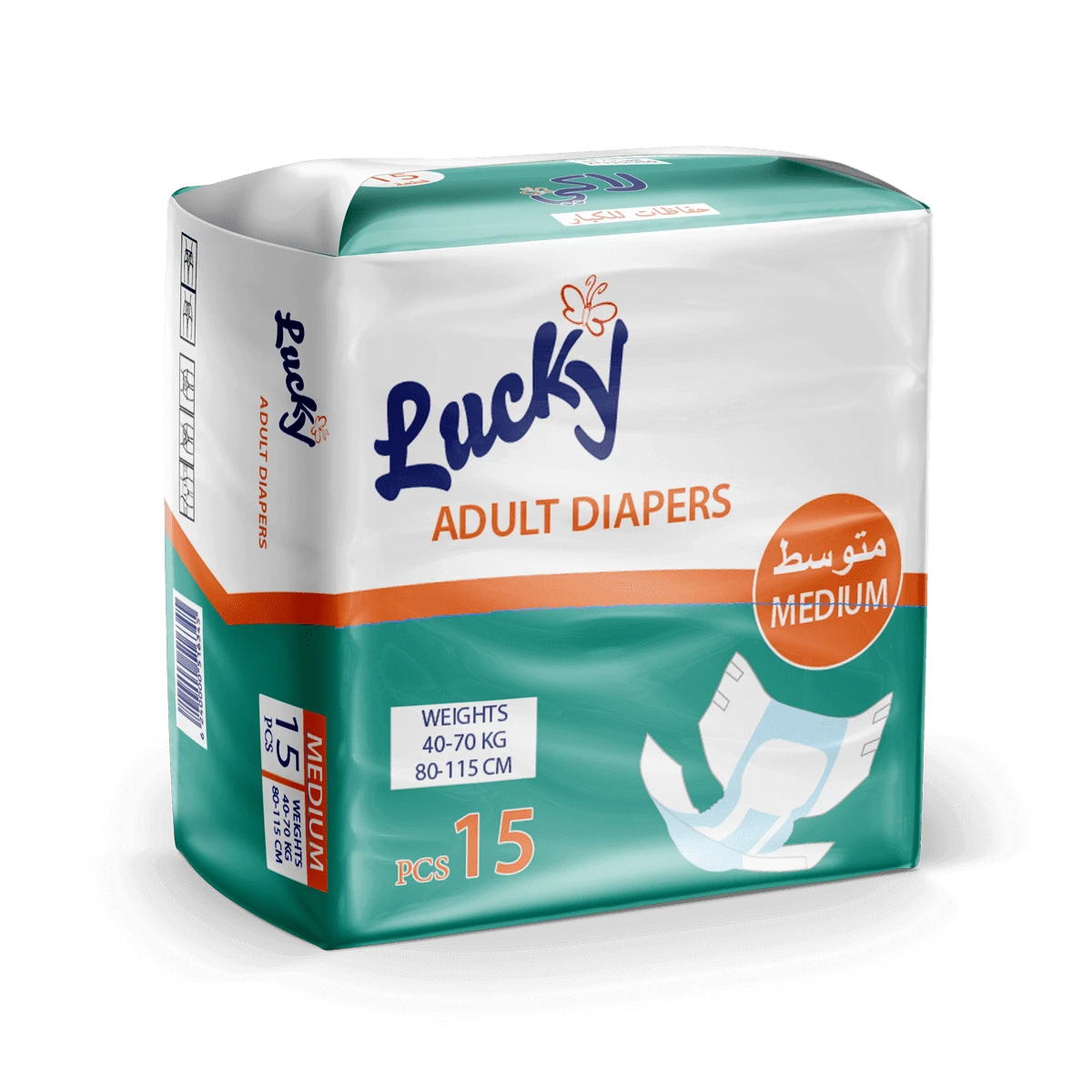 حفاضات "لاكي أدلت" (Lucky Adult) Medium-sized  تحتوي على 15 قطعة،