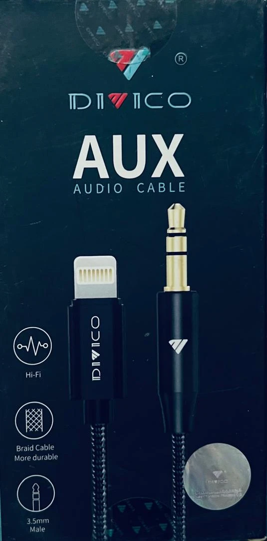كابل صوت AUX من العلامة التجارية DIVICO، وهو مصمم خصيصًا لتوصيل أجهزة Apple (مثل iPhone/iPad) المزودة بمنفذ Lightning بأجهزة الصوت التقليدية.