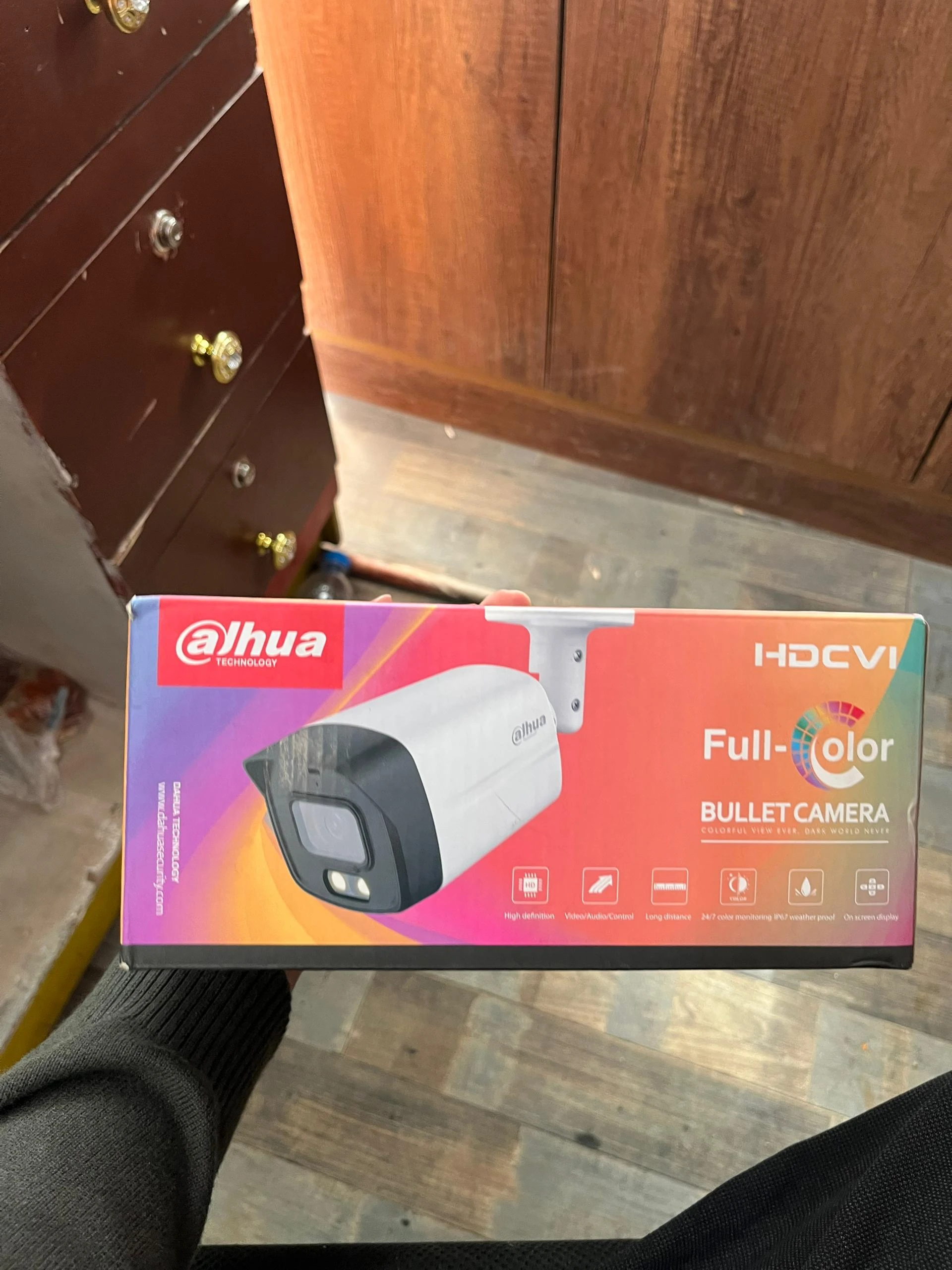 الدقة: 5 ميجابكسل.  التصوير الليلي: لون كامل على مدار الساعة طوال أيام الأسبوع (24/7) مع إضاءة LED دافئة تصل إلى 40 مترًا.  مقاومة العوامل الجوية: مصنفة بمعيار IP67، مما يعني أنها مقاومة للغبار والماء.  الصوت: ميكروفون مدمج لالتقاط الصوت.  العدسة: عدسة ثابتة (Fixed-focal) بطول بؤري 3.6 ملم، مع فتحة عدسة قصوى \(F1.0\).  مجال الرؤية: أفقي: 88 درجة.  رأسي: 46 درجة.  قطري: 104 درجة.  التوافق: تدعم تقنية HDCVI ويمكن تبديلها إلى أنظمة CVI/CVBS/AHD/TVI.  طول الكابل: تدعم نقل الفيديو عالي الدقة لمسافات طويلة عبر الكابل المحوري.  طاقة التشغيل: تعمل بجهد \(12V\pm 30\%DC\).  الشكل: تصميم على شكل رصاصة (Bullet).