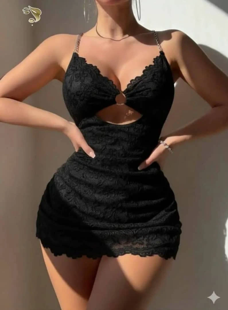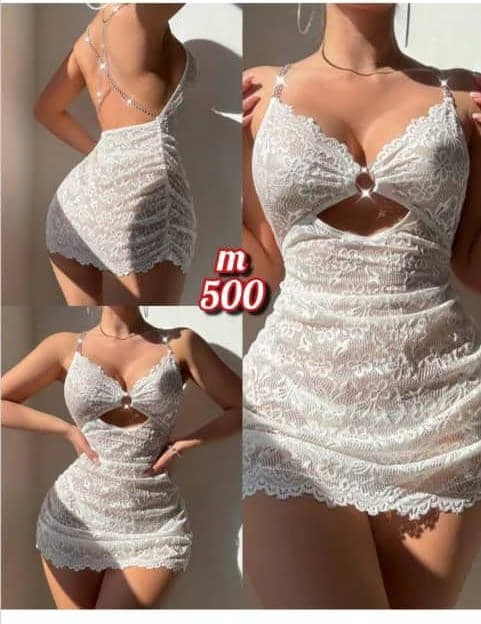 لانجري فستان قصير دانتيل المقاس/فري سايز يلبس من وزن 40الى إلى 60. الوانه/ أسود وابيض