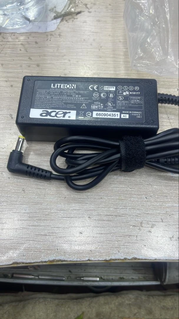 بيانات الإدخال (INPUT) ​هذه هي متطلبات الطاقة التي يسحبها المحول من مقبس الحائط: ​الجهد (Voltage): 100-240V (فولت) ​ملاحظة: هذا يعني أنه يعمل عالميًا. ​التردد (Frequency): 50-60Hz (هرتز) ​التيار (Current): 1.5A (أمبير) ​بيانات الإخراج (OUTPUT) ​هذه هي الطاقة التي يوفرها المحول لجهاز اللابتوب: ​الجهد (Voltage): 19V (فولت) ​التيار (Current): 3.42A (أمبير) ​الطاقة (Wattage): 65W (واط) ​ملاحظة: تُحسب عن طريق ضرب الجهد × التيار (19V \times 3.42A \approx 65W).