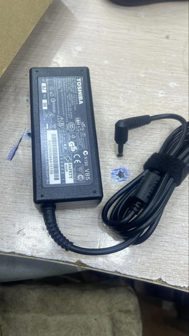 التيار المتردد الداخلي (تيار متردد داخلي): يُظهر الملصق نطاق جهد الدخل (عادةً ١٠٠-٢٤٠ فولت) والتردد (عادةً ٥٠-٦٠ هرتز)، ولكن الأرقام غير واضحة بما يكفي لتأكيدها. التيار المستمر الخارجي (تيار مستمر خارجي): يظهر الجهد (فولت) والتيار (أمبير) أيضًا على الملصق، ولكنهما غير واضحين بما يكفي لقراءتهما بدقة. عادةً، بالنسبة لمحولات الكمبيوتر المحمول، تكون هذه المواصفات مثل ١٩ فولت وحوالي ٣.٤٢ أمبير أو ٤.٧٤ أمبير، مما ينتج عنه طاقة ٦٥ واط أو ٩٠ واط.