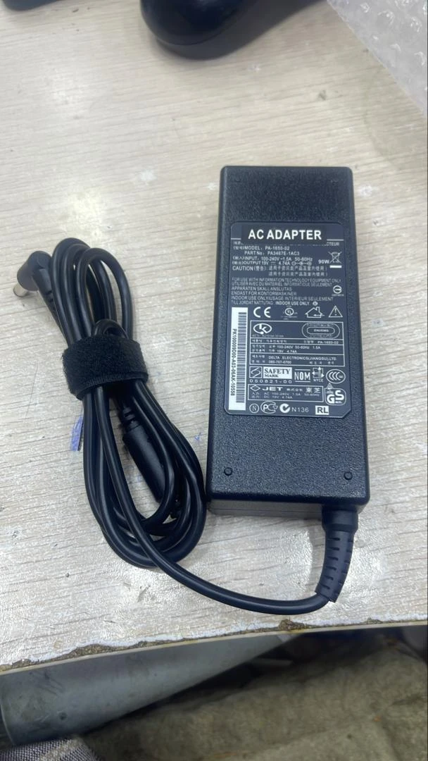 بيانات المدخل (Input) الجهد (Voltage): 100 \text{V} - 240 \text{V} التيار (Current): 1.5 \text{A} التردد (Frequency): 50 \text{Hz} - 60 \text{Hz} الطاقة (Power): 90 \text{W} 🔋 بيانات المخرج (Output) الجهد (Voltage): 19.5 \text{V} التيار (Current): 4.62 \text{A}