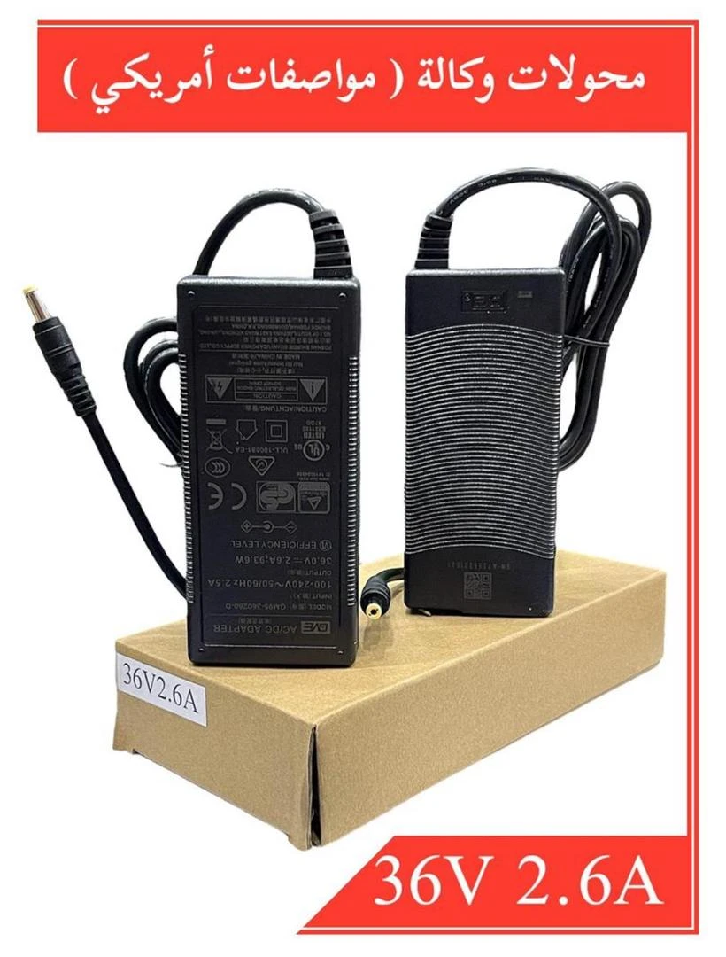الطراز: YJ-DA95-360260-Q (الجزء الأخير يشير إلى 36 فولت 2.6 أمبير) المدخل: 100-240 فولت ~ 50/60 هرتز 2.5 أمبير المخرج: 36 فولت 2.6 أمبير = 93.6 واط معايير السلامة: UL، CE، RCM الكفاءة: V (مستوى الكفاءة)