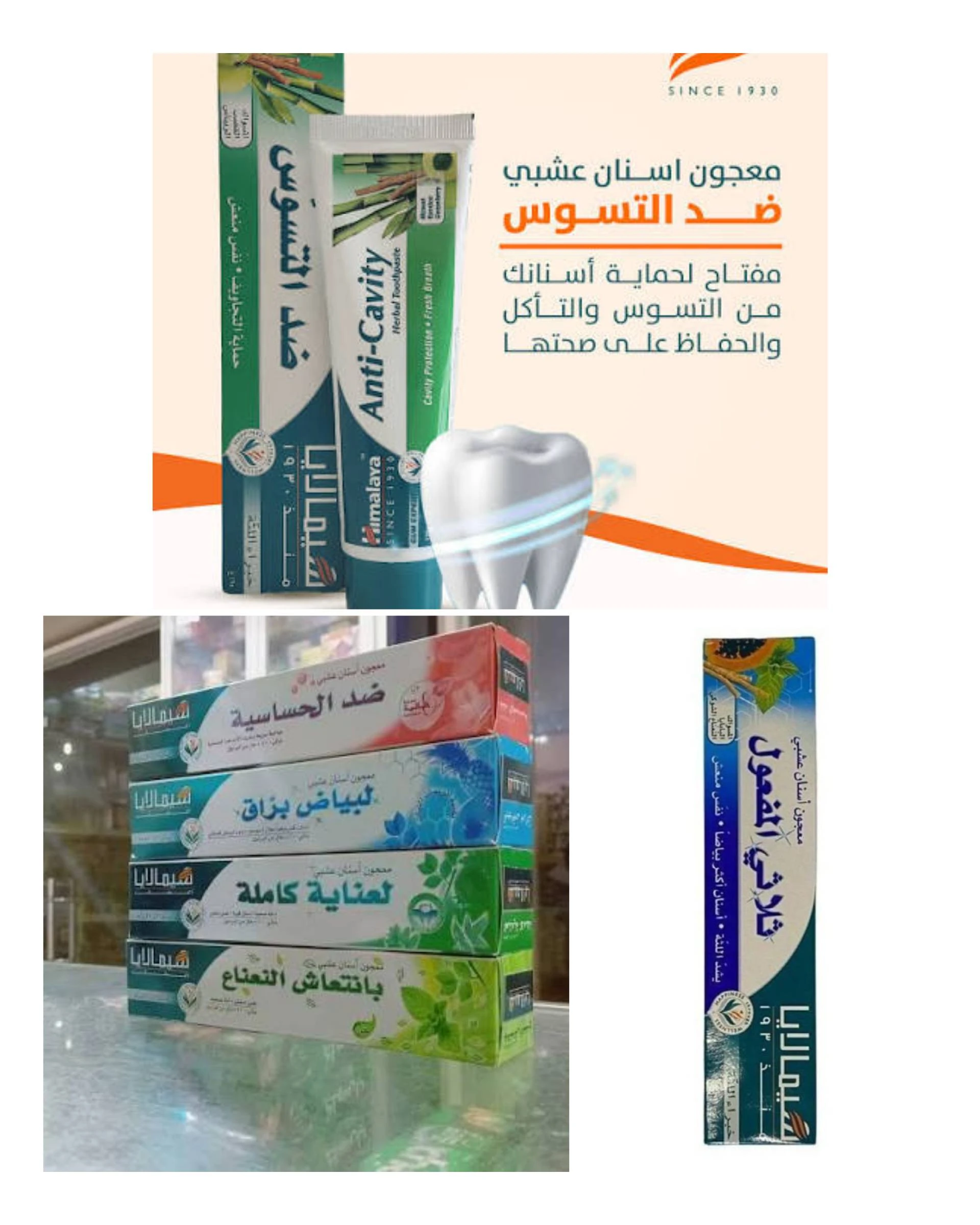معجون أسنان هيمالايا "العناية الكاملة" هو تركيبة عشبية متقدمة توفر حماية شاملة للأسنان واللثة، تحتوي على أعشاب مثل النيم والرمان والمسواك، تعمل على محاربة الجراثيم، تقليل البلاك، منع نزيف اللثة، وتوفير نفس منعش يدوم طويلاً، وهو خالي من الفلورايد والبارابين ومناسب للاستخدام اليومي لجميع أفراد العائلة.