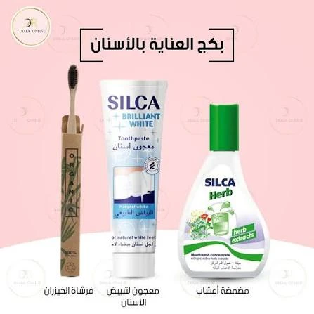 معجون أسنان "سيلكا" بنوع مخصص للتبييض يُعرف باسم "سيلكا بريليانت وايت" (Silca Brilliant White).  يتميز هذا المنتج بما يلي: إزالة البقع: يحتوي على تركيبة فعالة تساعد على إزالة البقع السطحية الناتجة عن القهوة والشاي والتدخين، وذلك بفضل وجود مادة السيليكا (Silica) كمكون كاشط ولطيف في الوقت نفسه.تبييض طبيعي: يهدف إلى استعادة البياض الطبيعي للأسنان ومنح ابتسامة أكثر إشراقًا.حماية شاملة: بالإضافة إلى التبييض، فإنه يوفر حماية من التسوس ويقوي مينا الأسنان بفضل احتوائه على الفلورايد.مناسب للاستخدام اليومي: تم تصميمه ليكون آمنًا للاستخدام اليومي دون التسبب في حساسية مفرطة للأسنان أو اللثة.  تعتبر السيليكا مكوناً أساسياً في العديد من معاجين الأسنان المبيضة لأنها تساعد على تلميع سطح السن وإزالة التصبغات دون خدش المينا بشكل كبير.