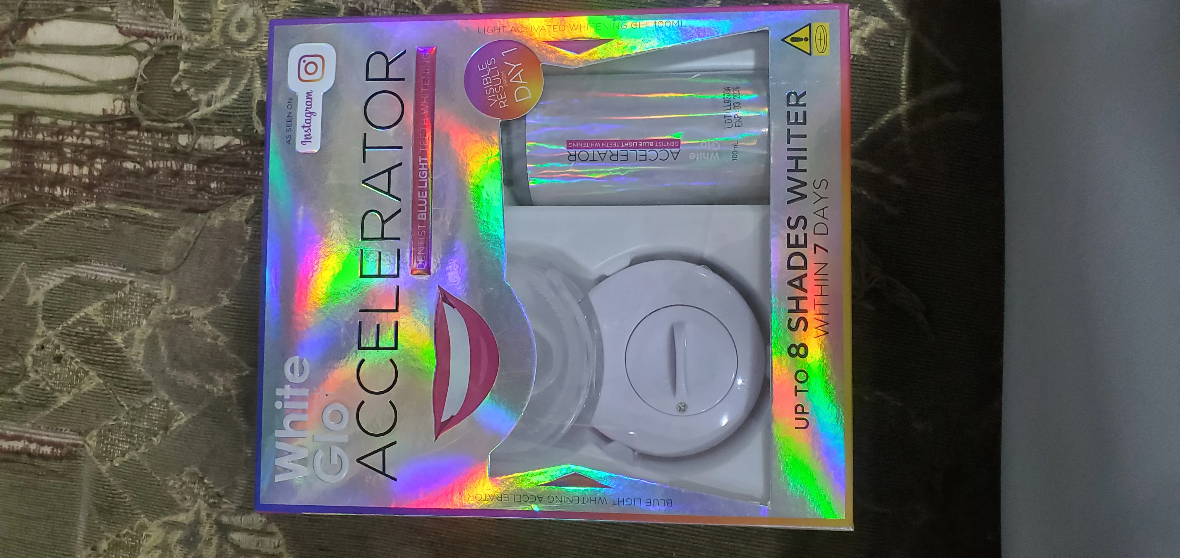 مجموعة وايت جلو أكسيليريتور لتبييض الأسنان الطبيعي، مبنية على أبحاث استمرت عقودًا، وصُممت من قِبل جورجيوس ف. سوتيروبولوس، الخبير الأسترالي الأول في تبييض الأسنان. مزيج جل التبييض الخاص بنا، المصنوع من بيروكسيد الكارباميد والمكونات الطبيعية التي يتم تنشيطها بواسطة ضوء LED عالي الطاقة لتبييض الأسنان، سيزيل بقع سنوات من القهوة والشاي والنبيذ والتبغ وغيرها، ليمنحك ابتسامة واثقة ومشرقة تستحقها!فعال بشكل لا يُصدق على البقع، لطيف على الأسنان: ما لا يُقدمه أي جل تبييض أسنان آخر - نستخدم تركيزًا أقل من بيروكسيد الكارباميد لتقليل الحساسية، ونضيف الباباين والبروميلين، وهما إنزيم تبييض أسنان طبيعي مستخلص من البابايا والأناناس، لنقدم لكم الحل الأمثل لإزالة البقع وتغير اللون المتراكم على مدى سنوات. نتيجةً لعقد من البحث والتطوير، بموافقة الحكومة الأسترالية، نفخر بتقديم مجموعة تبييض الأسنان بالأشعة فوق البنفسجية الأكثر فعاليةً في السوق.تركيبة سريعة المفعول - نتائج ملحوظة في ١٠ دقائق: صواني تبييض الأسنان لدينا مريحة للغاية ومناسبة للاستخدام المتعدد، ما يتيح لك استخدامها أثناء مشاهدة التلفاز، أو القراءة، أو العمل على الكمبيوتر المحمول، أو أي شيء آخر! في ١٠ دقائق فقط يوميًا، يمنحك نظام تبييض الأسنان غير الجراحي نتائج فورية. احصل على ٥٠ استخدامًا من جل تبييض الأسنان الخاص بنا، والمناسب للأسنان الحساسة، شاملًا جميع الرسوم، دون الحاجة إلى عبوات إعادة تعبئة مزعجة!ميزات متقدمة، مؤقت مدمج لمدة ١٠ دقائق، ٥ مصابيح LED عالية الأداء لتبييض الأسنان: تتبع الوقت بسهولة للحصول على أفضل نتيجة بفضل مؤقتنا بفاصل زمني ١٠ دقائق. يحتوي جهاز وايت جلو أكسيليريتور أيضًا على ٥ مصابيح LED زرقاء عالية الأداء لتبييض الأسنان، مما يُسرّع بفعالية المكونات النشطة في جل وايت جلو لتبييض الأسنان لاختراق بقع مينا الأسنان، السطحية والعميقة، عن طريق تحويلها إلى جزيئات أكسجين عديمة اللون.ملايين الابتسامات الأسترالية بفضل وايت غلو: ظاهرةٌ في جميع أنحاء أستراليا، لا يوجد مُبيّض أسنان أفضل منه متوفر في أي مكان. الآن، السرّ متوفر في الولايات المتحدة الأمريكية لأول مرة! أهلاً بكم من الجانب الآخر من العالم، من شواطئ أستراليا المشمسة! أهلاً بكم في عائلة وايت غلو