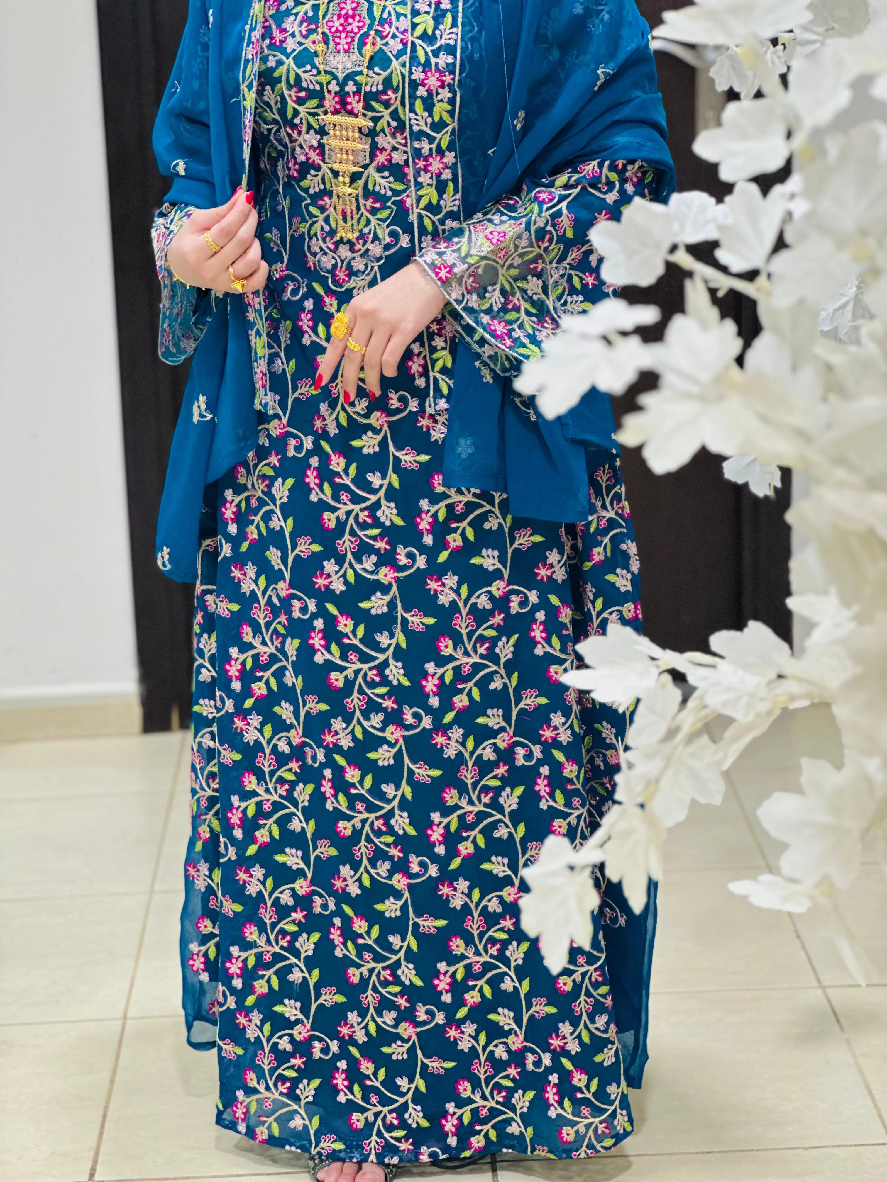 خام شيفون مخروز شغل تطريز مع شيله سعر