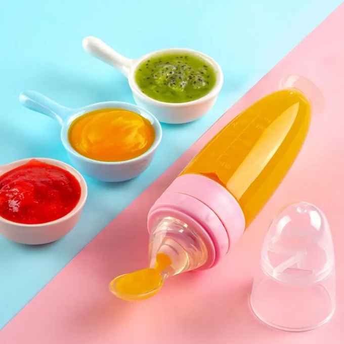 ملعقة تغذية الأطفال على شكل رضاعة سيليكونيةمريحة وعمليةتم تصميم هذه الرضاعة لسهولة الاستخدام والنظافة، مما يوفر طريقة رائعة لإطعام طفلك يضمن التصميم الخفيف إمكانية حملها في أي وقت وفي أي مكان، مما يوفر الراحة في جميع الأوقاتاستخدام متعدد يمكنك من خلال الملعقة إطعام طفلك الفواكه والسوائل بما في ذلك الماء والحليب والأدوية والعصير وغيرهاسهلة الاستخدامما عليك سوى الضغط على قاعدة السيليكون لتجميع كمية الطعام المطلوبة على الملعقة، مما يوفر تغذية سهلة وفعالةآمنة وموثوقة مصنوعة من جل السيليكا ومواد البولي بروبيلين الآمنة والموثوقة وايضاً مزودة بغطاءٍ واقٍ لتقليل التسربات والانسكابات، كما أن بنيتها خفيفة الوزن تجعلها رفيقاً مثالياً للسفر