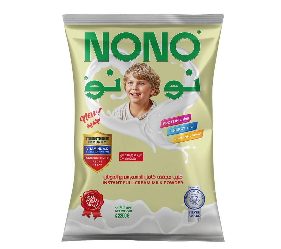 نونو حليب مجفف كامل الدسم  سريع الذوبان مقوي للأطفال  مافوق عاميحتوي علىى فيتامين أ , د , 0.25% يحتوي على 28% من دسم حليب الأبقارمغذي و يحتوي على الكالسيوم و البروتينات و الفيتامينات اللازمة لنمو الأطفاليأتي في عبوة معدنية سعة 2250 جم